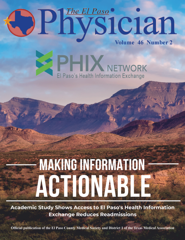 PHIX is proud to partner with the El Paso County Medical Society on the latest El Paso Physician Magazine. PHIX is featured on the cover titled "Making Information Actionable." Pages 14 and 15 discusses PHIX's data sharing ecosystem and a 2023 Annals of Family Medicine study highlighting the positive patient outcomes PHIX has in the community. PHIX aims to be a faithful steward of health care data on behalf of our partners and the El Paso borderland region.